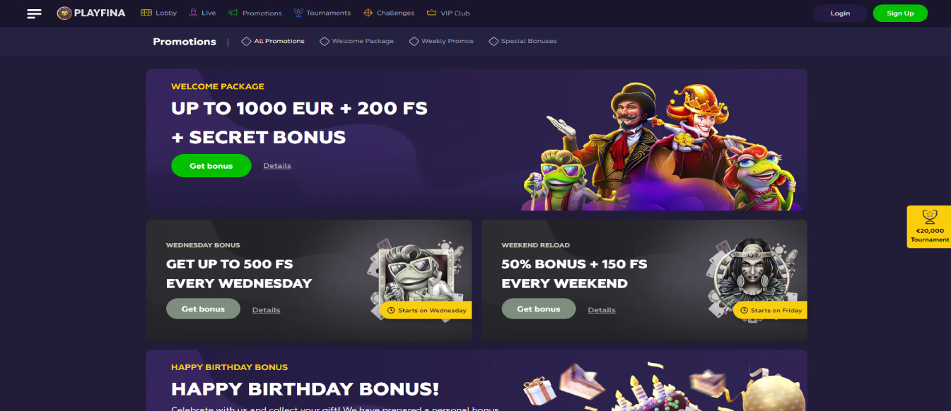 By simply signing up with Playfina and taking advantage of their generous sign-up bonus, you'll be on your way to unlocking these special rewards. The more you play and engage with the platform, the more rewards you'll earn, giving you even more reasons to keep coming back for more.